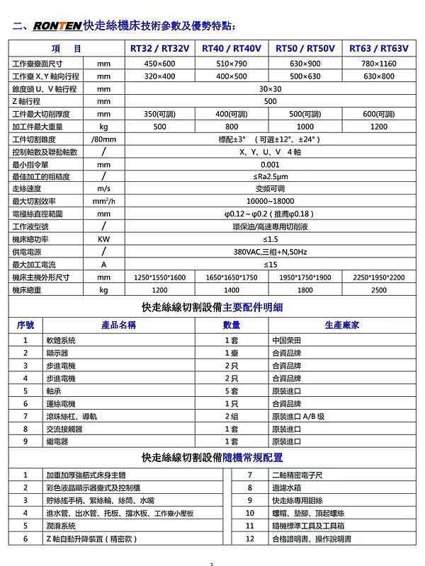 3.切割精度≥0.015mm;切割面粗糙度≥2.0μm;最高加工速度每分钟达180平方毫米 5.整机结构经三维有限元软件分析,布局合理、机械刚性高。机床各关键零部件都经三坐标严格检测,各轴定位精度均用激光干涉仪进行检测,机床精度得到可靠保证